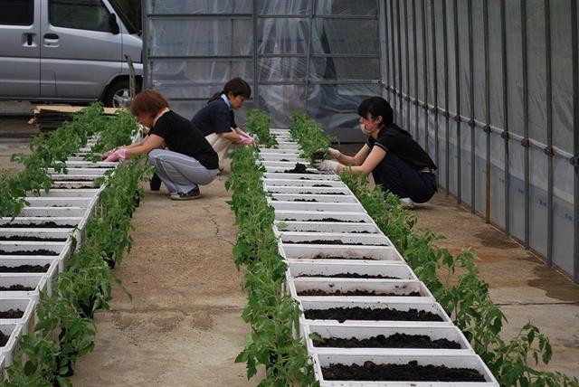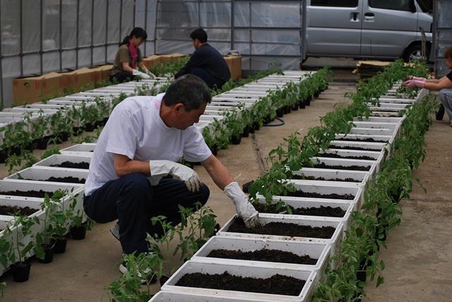 コンクリートの上でも、アイコが栽培できる農法です。6月に定植、8月に収穫を始める予定です!!